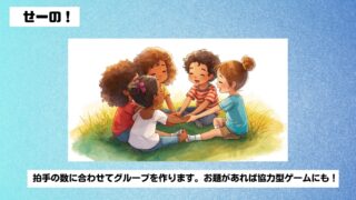 レク・ゲーム 学級レク「せーの!」 概要:拍手の数に合わせてグループを作ります。 「子供たちがいつも同じメンバーとしか交流しない」という悩み。多いのではないでしょうか。授業で「〇人組を作って」と言っても同じメンバー。 そんな子供たちに「混ざりましょう」と言ってもなかなか難し... 2025.10.02 レク・ゲーム5分でできる授業で使える