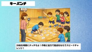「キーパンチ」は、円の中に散らばったカードを順番にタッチしていく協力型ゲームです。走る人は1人ずつ、触れるカードは1枚だけ。だからこそ、チーム全員での作戦会議が勝負のカギになります。「どのルートで行く?」「次は誰が走る?」など、自然と役割分...